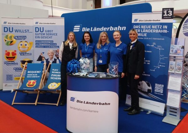 Triff uns persönlich und erfahre mehr über die Länderbahn als Arbeitgeber, über das Berufsbild der Fahrgastbetreuung und den Bewerbungsprozess. Komm in den persönlichen Austausch mit unseren Kolleginnen und Kollegen aus dem Betrieb sowie aus der Personalabteilung.